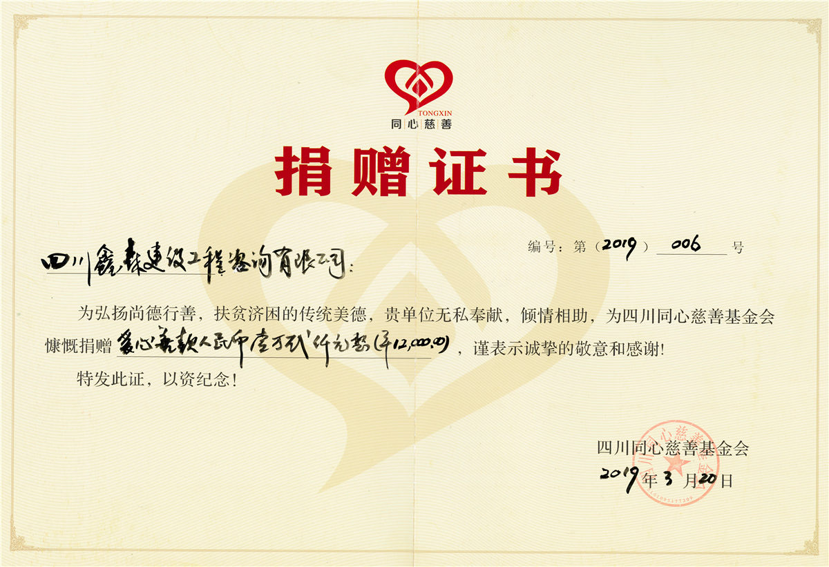 2019捐献证书-四川全过程工程咨询, 四川全过程咨询机构, 四川工程造价公司, 成都全过程咨询机构, 成都全过程工程咨询, 成都工程造价咨询公司, 成都工程造价公司, 四川全过程工程咨询, 四川全过程咨询机构, 四川工程造价咨询公司, 四川工程造价公司, 成都全过程咨询机构, 成都全过程工程咨询, 成都工程造价公司, 成都工程造价咨询公司